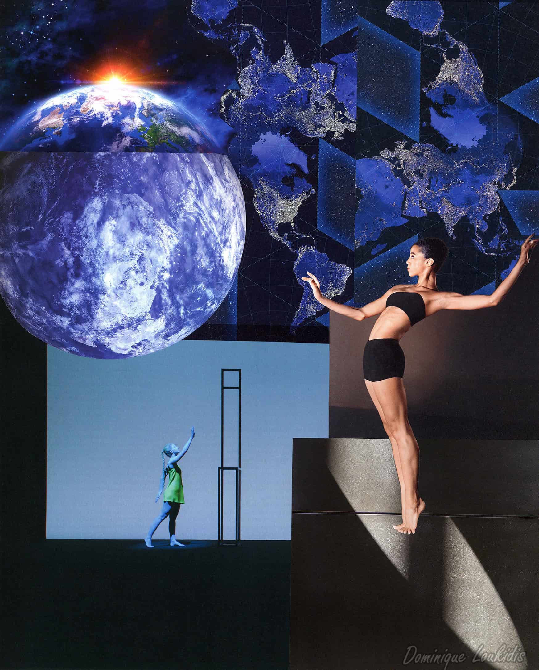 Diese Collage vermittelt ein Gefühl unendlicher Leichtigkeit. Sie stellt unseren Planeten dar, als wäre er ein mit Helium gefüllter Ballon, und symbolisiert damit auch seine Zerbrechlichkeit.